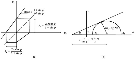 Mohr–Coulomb criteria: (a) normal stresses; (b) normal and shear stress.