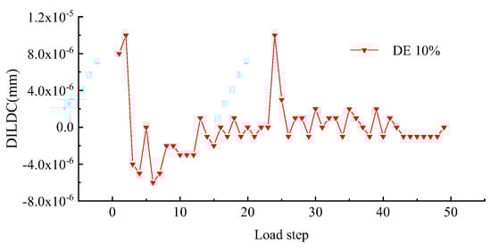 As shown in Figure 21, when the damage extent is less than 90%, the amplitude of DILDC changes gently, and the increase in the damage extent of elements has little impact on the structural rigidity characteristics and has a certain safety reserve. However, with the increase in the damage extent, the amplitude of DILDC changes sharply and long, and the damage extent has a greater impact on the structural rigidity characteristics, and the structural safety performance becomes low. This is consistent with the actual structural damage change law.