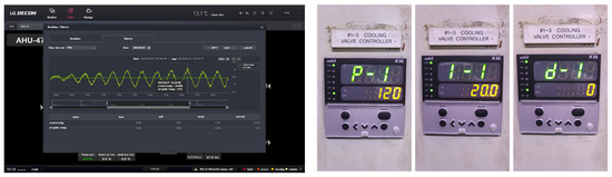 A building energy management system (BEMS) monitored the energy consumption of the building and the operating status of the primary and secondary systems as shown in Figure 3. Also, the cooling coil valve is controlled by the PID controller with P, I, and D values, respectively, as shown in right side of Figure 3. However, data generated by the BEMS are stored on the database system only for a day, owing to the initial cost limit, which is typical for existing buildings. Due to insufficient operational data for the HVAC system, it is necessary to optimize the system control using short-term datasets.