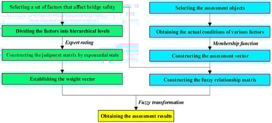 This paper combines the characteristics of the AHP and fuzzy comprehensive assessment method, adopting the fuzzy AHP for the safety assessment of CFST arch bridges. Within this theoretical framework, the exponential scale is introduced to replace the traditional ‘1–9’ scale for establishing the judgment matrix. Additionally, proximity analysis and variable weight processing techniques are employed to adjust the assessment results. Its basic approach is as follows: