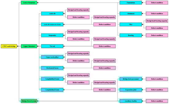 The hierarchical structure of the CFST arch bridge, established according to the principles of the AHP, is shown in Figure 2.