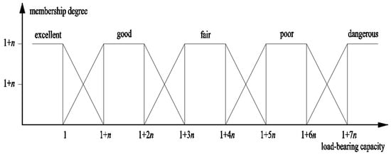 By substituting Cr into the membership function, the safety assessment vector r(r1,…,rm) for the primary stressed components can be obtained. The membership function is shown in Figure 3, and for convenience of expression, let n = (Cd − 1)/7.