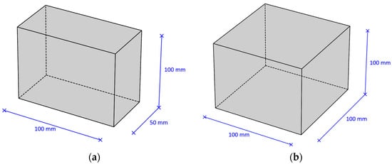 Types of samples: (a) sample type (1A)—plate 100 × 100 × 50 mm; (b) sample type (2A)—cube 100 × 100 × 100 mm.