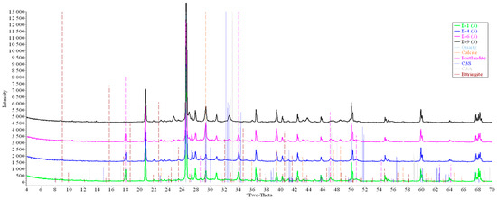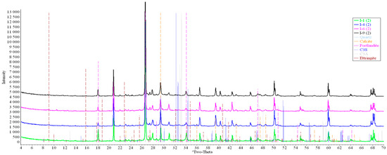 Standard-free quantitative X-ray diffraction analysis using the Rietveld method was carried out using Siroquant 4.0 Sietronics Pty Ltd. software (Mitchell, Australia). For all phases, the following parameters were specified: scale factor, zero offset of the device counter, background parameters (Chebyshev polynomial of the 5th degree), unit cell parameters, profile parameters using the Pearson VII profile function (U, V, W according to the Cagliotti dependence).