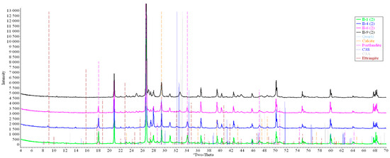 After conducting a microscopic examination using scanning electron microscopy (SEM) and energy-dispersive analysis for the same samples, appropriate sample preparation was carried out in order to conduct X-ray phase analysis using powder X-ray diffraction (XRD).