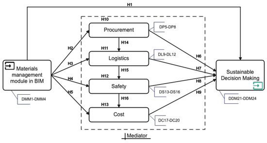 2.5. Mediating Effects in the BIM-Enabled Materials Management and Sustainable Decision Making Linkage