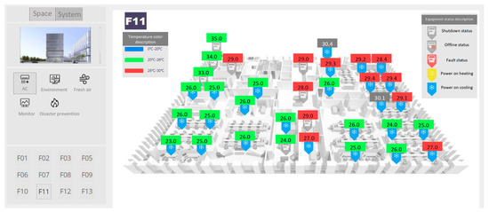 Then, the indoor environmental parameters, equipment operating parameters, and occupancy information were monitored. These parameters were transmitted in real time to an intelligent monitoring platform via a wireless network. Sensors transmitted the data every 10 min, which were then stored in a responsive database. Data extracted from 3 June 2023 to 27 August 2023 were utilized for the analysis.