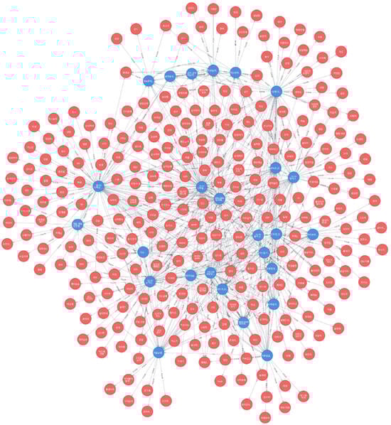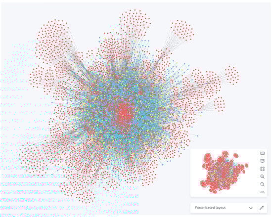 A KG is a data model that uses nodes, edges, and properties to store information in a network-like structure []. In this research, Neo4j, a widely used platform for graph data science and analytics, was employed to build the KG and apply algorithms using the Cypher language. Neo4j Desktop version 5.15.0 was used in this study, and the Graph Data Science Library version 2.7.0 was utilized to implement the graph algorithms. Broadly speaking, there are two types of KG models: property graph models and RDF (Resource Description Framework, Triplet Schema) graphs []. The RDF graph model is beneficial for representing complex concepts by using the RDF triple structure to express subjects, predicates, and objects []. On the other hand, the property graph model is used to model relationships between data, making it advantageous for querying and data analysis tasks based on these relationships []. Cypher is one of the most popular languages for creating and querying property graph models [].
