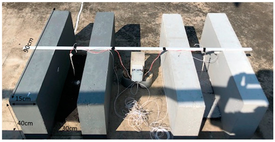 Cement concrete blocks, 900 mm × (L) 150 mm (B) × 400 mm (H) in size, were cast in the laboratory using concrete mix proportions similar to those of pre-cast concrete, with a cement, sand, and coarse aggregate weight ratio of 1:1.5:2 (SS 289, 2000), as shown in