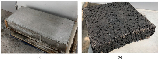 28]. The road material between the blocks was comprised of small cubes of asphalt concrete, measuring 300 mm × 300 mm × 50 mm in size, with a density 2429 kg/m