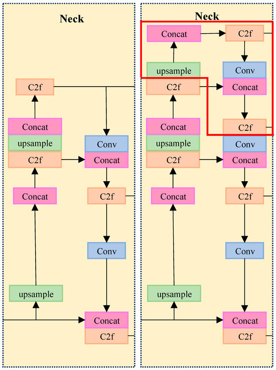 Comparison of the two structures of the added detection layer and the original YOLOv8 neck.