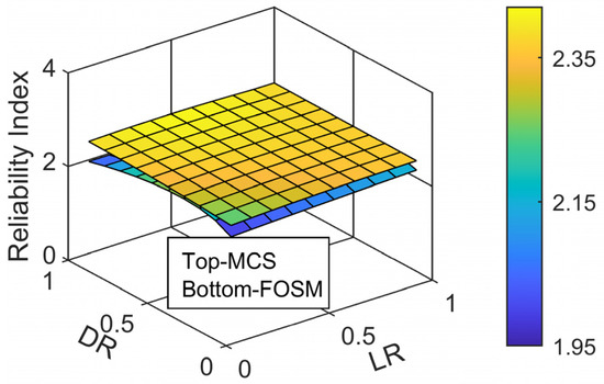 where mR denotes the mean value of the capacity model, mQ represents the mean value of the demand model, is the standard deviation of the capacity model, and signifies the standard deviation of the demand model.