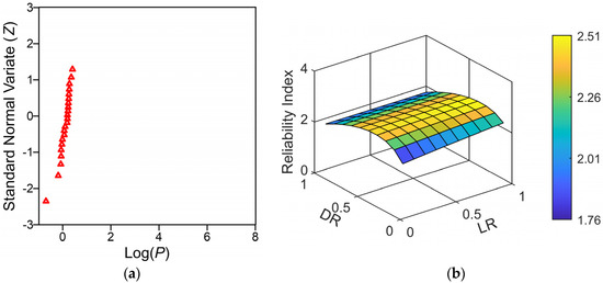 The probability of failure, Pf, is equal to the probability that an undesired performance will occur or probability that a structure will be unsafe. If R represents the capacity and Q represents the demand on a given structure, the corresponding limit state function can be written as g(R,Q) = R − Q [24]. Such a structure is deemed unsafe when g < 0 and the probability of failure is expressed as Pf = P(g(R,Q) < 0). The reliability index (β) is related to the probability of failure, Pf, as defined in Equation (5).