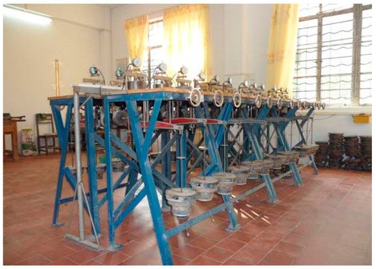 The soil used for the test was powdered soil from a site in Suqian as the model material for the foundation soil. After each layer of soil was compacted, soil samples (see Figure 2) were taken out around the model piles using the ring knife method to conduct geotechnical tests. Then, the physical and mechanical property indicators of the soil samples were obtained in Table 1.