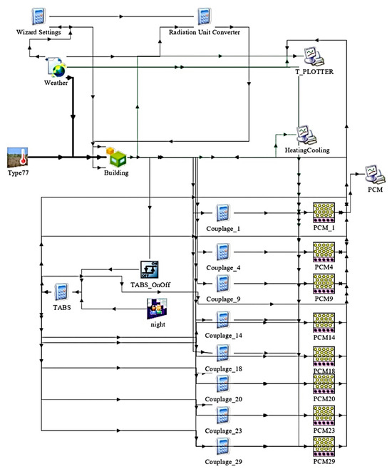For the modeling of phase change material in wall constructions, we used the Type 399. Figure 3 illustrates the tools used in the Trnsys dynamic simulation platform developed.