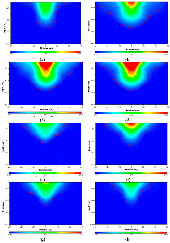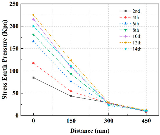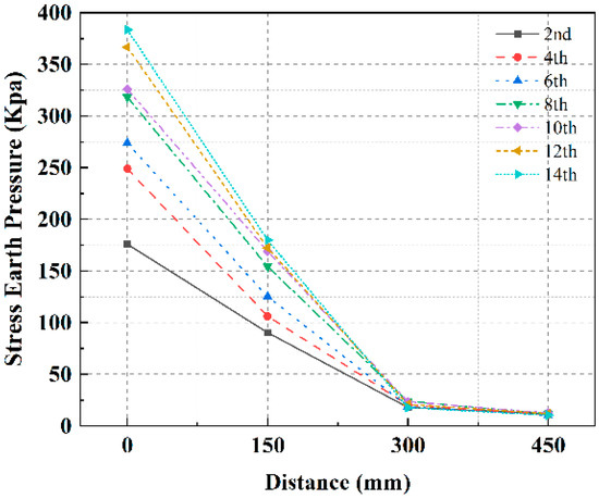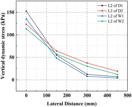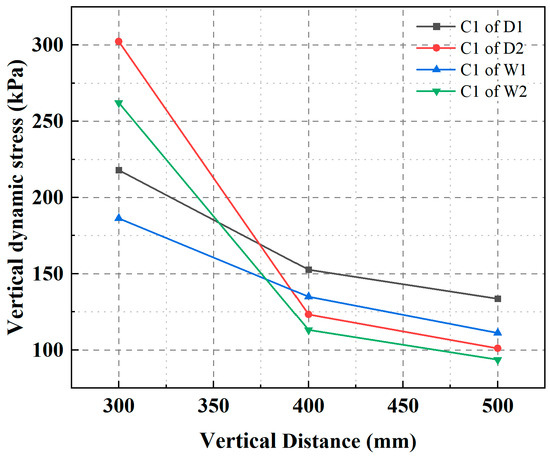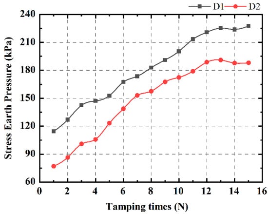 - The HGL functions as an obstacle to the energy transfer of DC, both in terms of energy input to the tamper and energy reception by the soil. Compared to the low-water level subgrade, the tamping action time was extended by an average of 1.96 times. The mean reduction in peak dynamic stresses in the DC-strengthened HGL subgrade was 33.05% and the depth of influence was reduced by 14.5%. Furthermore, the time lag and decay rate were observed to increase.