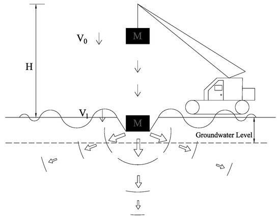 - Jia, M.; Cheng, J.; Liu, B.; Ma, G. Model tests of the influence of ground water level on dynamic compaction. Bull. Eng. Geol. Environ. 2021, 80, 3065–3078. [Google Scholar] [CrossRef]