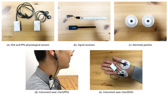 - Clean the palms and earlobes of the participants with alcohol cotton pads, put the wearable physiological sensors on the palms and earlobes of the participants, ask the participants to maintain a comfortable sitting position and relax for 5 min, and record the baseline data;