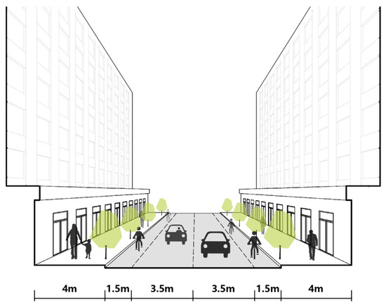 In terms of store density, although existing studies have not specified the number of stores on the street, Davies believes that a successful community needs to integrate commercial, educational, health, spiritual and civic uses in close proximity to residential functions to achieve functional mix and increase the vitality of the block [61]. It is therefore recommended that living streets should be guaranteed to have a sufficient number of storefronts to accommodate a greater variety of functions. Furthermore, a publication on the design of Boston’s streets [62] posits that an adequate number of shops, entrances, and exits can enhance pedestrian interaction with the street.