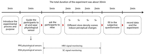 The fundamental methodology used in the store-density perception measurement experiment was analogous to that utilized in the interface transparency experiment. This entailed the observation of videos depicting varying degrees of store density for a period of approximately two minutes, followed by the documentation of physiological data and the administration of a subjective questionnaire pertaining to perceived comfort (Figure 6).