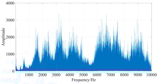Noise can have negative effects on the human body, causing people to feel annoyance and stress in noisy environments [41,42]. Additionally, noise can impact work performance and learning ability [43,44]. In similar studies, high-frequency noise was typically used as the stress source [45,46], with the duration for inducing mental stress usually being 10 min [47]. Therefore, high frequency noise was used as the pressure source in this study. Figure 2 shows the frequency domain distribution of the noise played. It can be seen that the frequency distribution of the noise source is relatively wide, which will cause the subjects to feel stressed. After calculation, the average frequency of the audio is about 5489 Hz, which is high frequency audio. The audio level experienced by participants is between 70 and 80 dB. Additionally, research showed that exposure to high-frequency noise for 10 min was sufficient to trigger a stress response [13,38]. According to a previous study, it took 20 min for the body to return to the stress-free state indicated by cortisol concentrations [48]. Therefore, the stress induction phase lasted ten minutes, and the recovery stage in this experiment lasted for a total of 20 min.