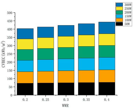 | CVBEC | 105 kWh/m2 | 63 kWh/m2 | X1 > X2 > X6 > X8 > X7 > X5 > X3 = X4 | As the window-to-wall ratio decreases (from 0.4 to 0.2), the annual renewable power generation of PV panels (ranging from 50 W to 300 W) decreases by approximately 16%. |