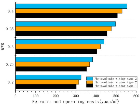 4.3.2. Impact of Different PV Window-to-Wall Ratios on Retrofit and Operating Costs