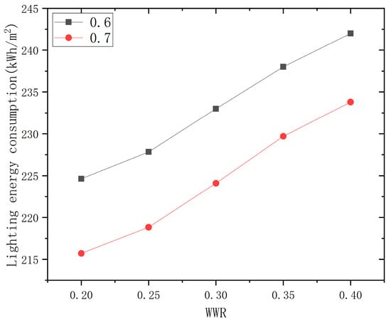 4.3.4. Impact of PV Window Transmittance and Window-to-Wall Ratio on Lighting Energy Consumption