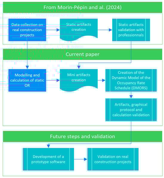 - Morin-Pépin, S.; Francis, A. Modeling and categorizing standardized artifacts for scheduling occupancy on building construction sites. Front. Built Environ. 2024, 10, 1380106. [Google Scholar] [CrossRef]