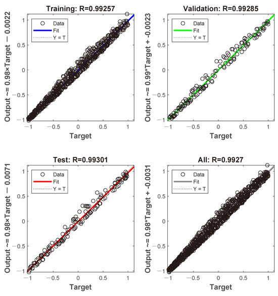 In this study, the method of optimizing the number of hidden layer neurons was adopted. The algorithm first sets an initial value and then linearly increases the number of neurons in order to find a hidden layer structure that minimizes the mean square error. During the training process, if the predicted performance is always unable to meet the requirements, consider increasing the number of hidden layers. The empirical Equation (1) for determining the number of hidden layer nodes was employed, setting an initial value of 3 as a starting point for optimization [25]. Subsequent testing revealed that when the number of hidden layer nodes n equals 5, the model’s mean square error is minimized, suggesting optimal training performance, surpassing 85%.