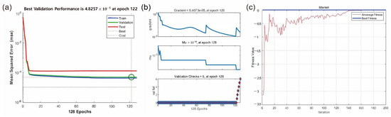 (a) lNumber of evolutionary generations. (b) Algorithm performance. (c) Training state.