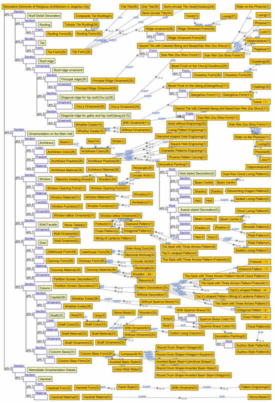 The system for documenting decorative elements of religious architecture in Jingzhou City (image created by the author, the number in parentheses in the figure represents the frequency of occurrence of the element).