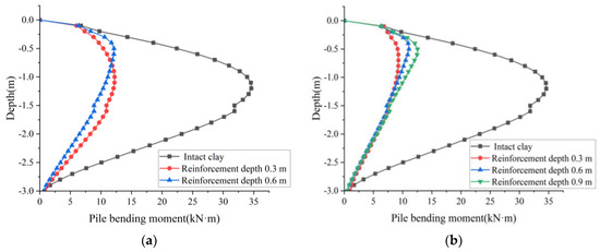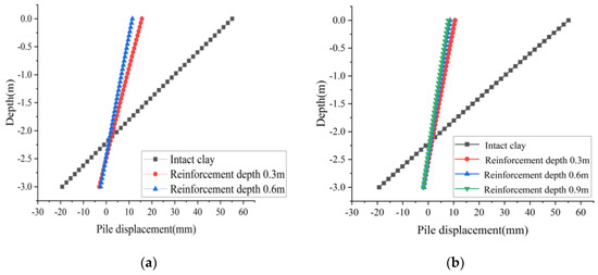 - As the reinforcement depth increases, the increase in bearing capacity does not increase linearly, but gradually decreases. This indicates that simply increasing the reinforcement depth to improve the horizontal bearing capacity of the pile requires a comprehensive consideration of the reinforcement purpose and economy. Blindly carrying out deep soil reinforcement without comprehensive evaluation is not advisable.