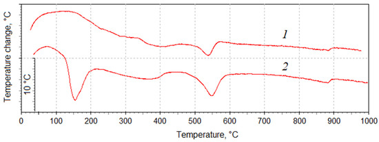 The results of the DTA of fly ash from Nazarovo Power Station are presented in Figure 4.