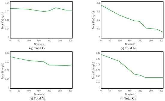 The water quality parameters in the rainwater storage tank installed at the Land and Housing Research Institute, which serves as a building test bed, were compared with the water quality concentrations of major domestic rainwater utilization facilities (Table 3). This study’s water quality analysis results were based on the water quality at the stabilization point within the storage tank, which was judged after four days.