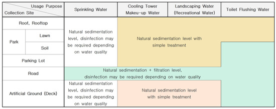 Rainwater collection sites and treatment methods by usage (source: [11]).