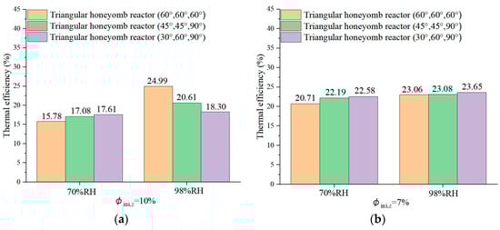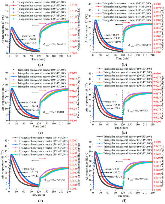 | Reactor | Process | Operating Conditions | Increment Rate of Peak Air Temperature Lift Compared with Triangular Honeycomb Reactor with Angles of 60°, 60°, and 60° |