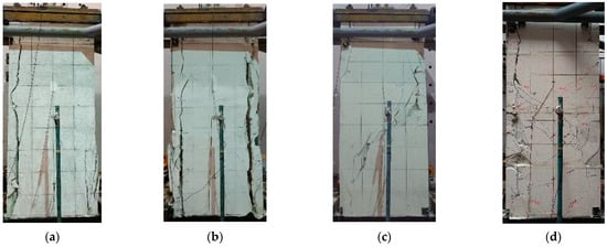 Failure characteristics of specimens: (a) CCW5-2; (b) CCW10-2; (c) CCW5-2.5; (d) CCW5-2.5-F.