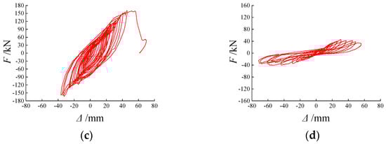 Hysteretic curve of specimens: (a) ECW5; (b) ECW10; (c) ECW5-F; (d) ECW5-F-P.
