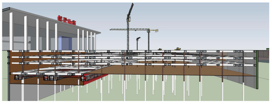 The reinforcement schematic is displayed in Figure 14. A simulation analysis was conducted to study the impact of foundation pit excavation on the adjacent elevated bridge A under different reinforcement depths. The conditions of soil reinforcement depths are detailed in Table 7.