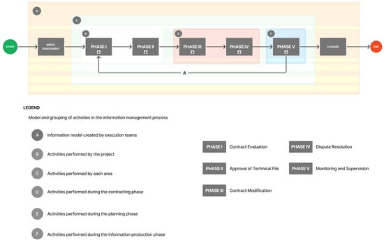This way, a system was developed to optimize processes and improve the existing contract management framework, utilizing information management tools such as BIM and the flexibility of standardized contracts. This system is in line with the guidelines and projections of the National Infrastructure Plan for Competitiveness [] and the National BIM Guide [], which are currently part of the Peruvian government’s strategic plan to enhance infrastructure management.