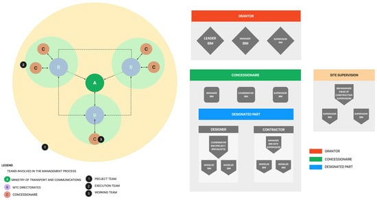 According to the guidelines given in NTP-ISO 19650-1:2021 [] and NTP-ISO-2:2021 [] and the Peruvian national BIM guide, the responsibilities of the actors as part of an integrated information management process are stipulated in Figure 3.