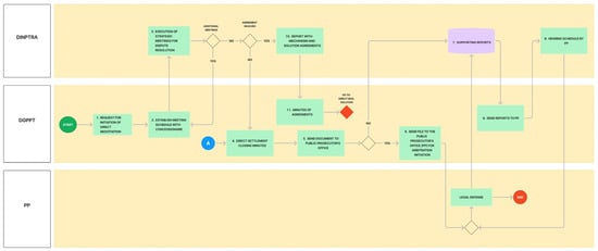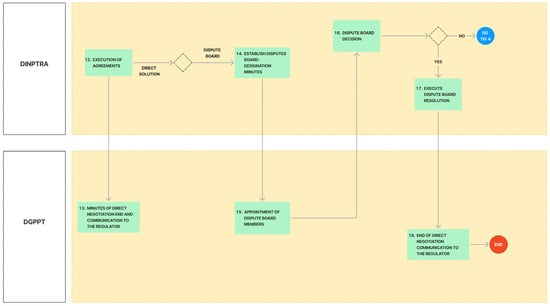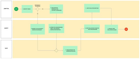 From this study we conclude that the current contractual configuration added to the existing bureaucracy in the organizational maps of public institutions generate rigid and conflicting elements. One of these points, according to the data processing, is the release of land and interference, since this parameter is key and is a critical point that the Peruvian State does not clearly define, at least in the contracts analyzed in this study, generating stagnation in the programmed investment and prolonging the objectives of the contracts, allowing the emergence of addenda, since the grantor offers deadlines that become uncertain, giving rise to controversies that later lead to arbitration. The present model, based on the literature, proposes the use of BIM information management tools, since this tool allows the transparency of various processes throughout the infrastructure life cycle [], which is why the process maps shown include suggestions from NTP-ISO 19650-1:2021 [] and NTP-ISO 19650-2:2021 [], which allows an alignment with regard to the standardization of processes in the public sector and in turn we align ourselves to the BIM Peru plan proposed by the Peruvian State in which it is proposed to integrate BIM in all areas of the public sector by 2030.