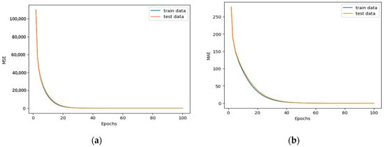 (a) MSE and (b) MAE curves represented by arithmetic coordinates.