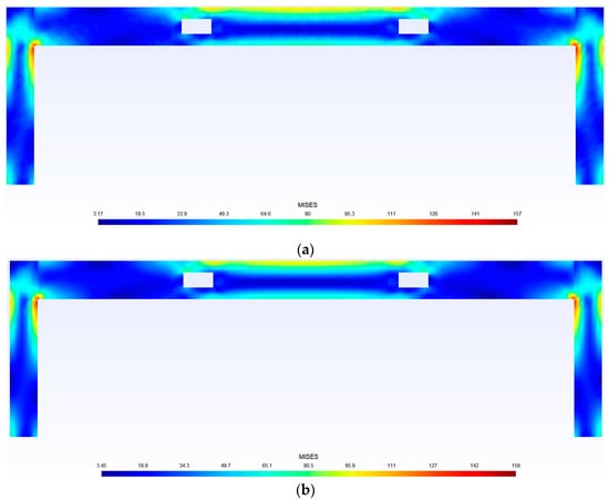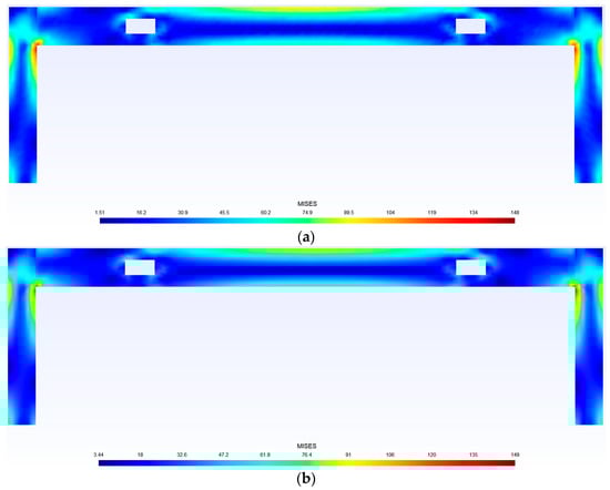 Stress distribution of concrete with an opening distance of 3524 mm using (a) deep learning models and (b) a finite element analysis (unit: MPa).