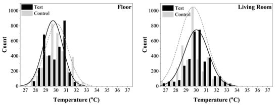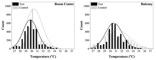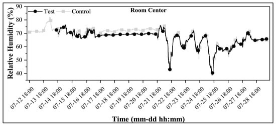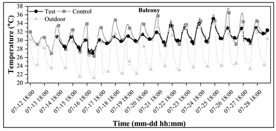 Table 3. The outdoor temperature during the measurement period ranged from the highest 34.7 °C to the lowest 21.2 °C and began to rise around July 12, and the daily temperature range can be seen gradually beginning to show a gap and then decreasing.