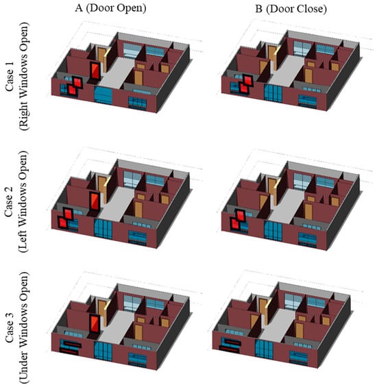 For CFD simulation, a real physical space model of 3 m × 3.35 m × 3 m was created with windows and real-world locations placed in various rectangular top vent configurations. Top vents were placed at the top of the building wall so that the warm air accumulated in the top layer of the room was discharged due to the air’s density difference, with the most important parameters to reduce indoor air temperature found to be the number of top vents and the top vents’ width and height relative to the entire wall [
