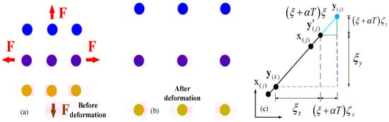 A two-dimensional plate with isotropic expansion. (a) Before deformation; (b) After deformation; (c) Computational analysis model.
