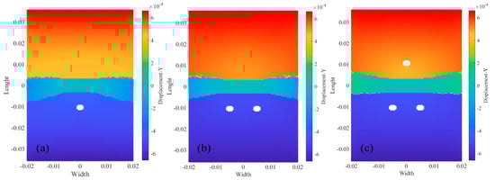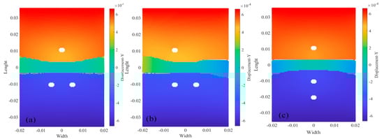 Influence of three types of bolt holes on the Y-direction displacement of a central double-crack (mm). (a) D1; (b) D2; (c) D3-1.