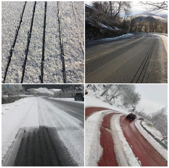 - Zhang, Q.W.; Zhao, Y.H.; Wu, Z.M. Deicing performance of carbon fiber heating wires embedded in concrete pavement. J. Highw. Transp. Res. Dev. 2015, 2, 41–48. [Google Scholar] [CrossRef]